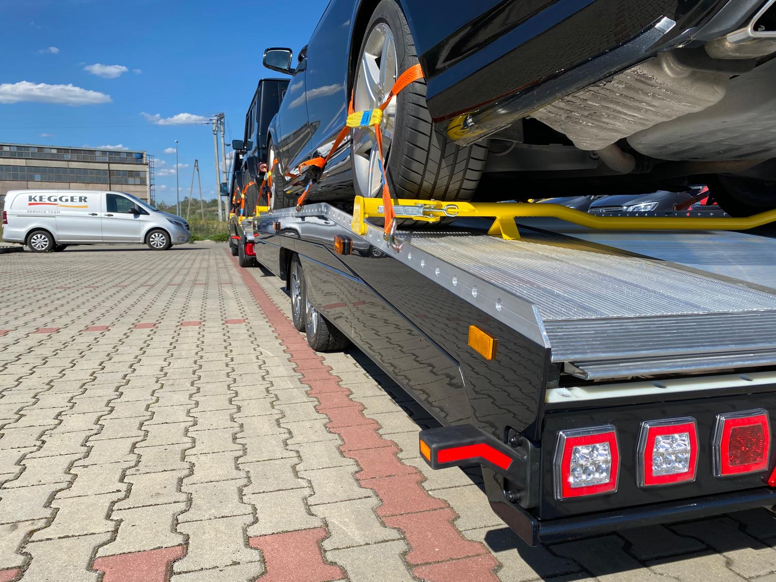 Extension ramps for loading additional vehicle onto a Kegger Transporter.