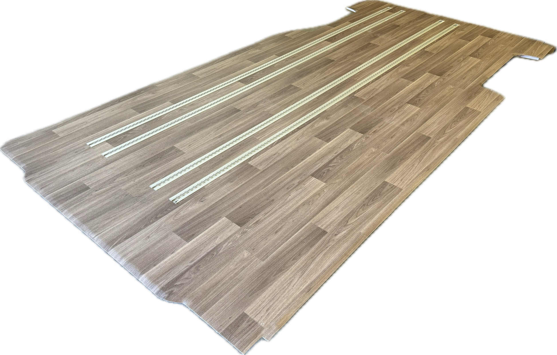 The SafeTrack Composite Floor System is a ready-made, form-fitted, insulated floor embedded with L-track. The L-track allows you to add modular accessories, such as VanEquipped or Travois RNR seat/beds, that are variable location on demand and easy in/out. Variable location is great, for example, one weekend you can move the seat forward and have a bike garage, the next weekend you can push it back and maximize your cabin space.